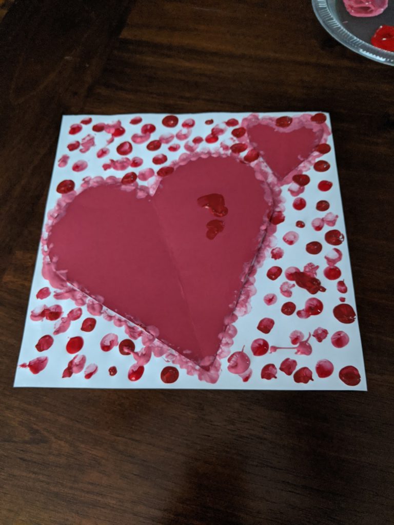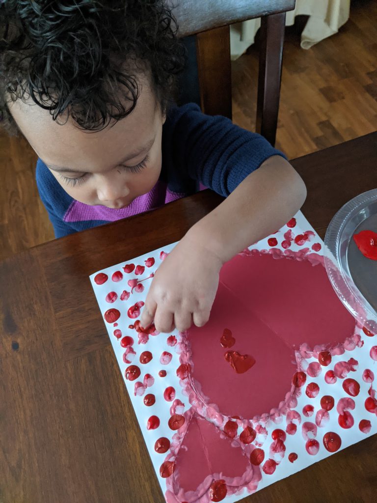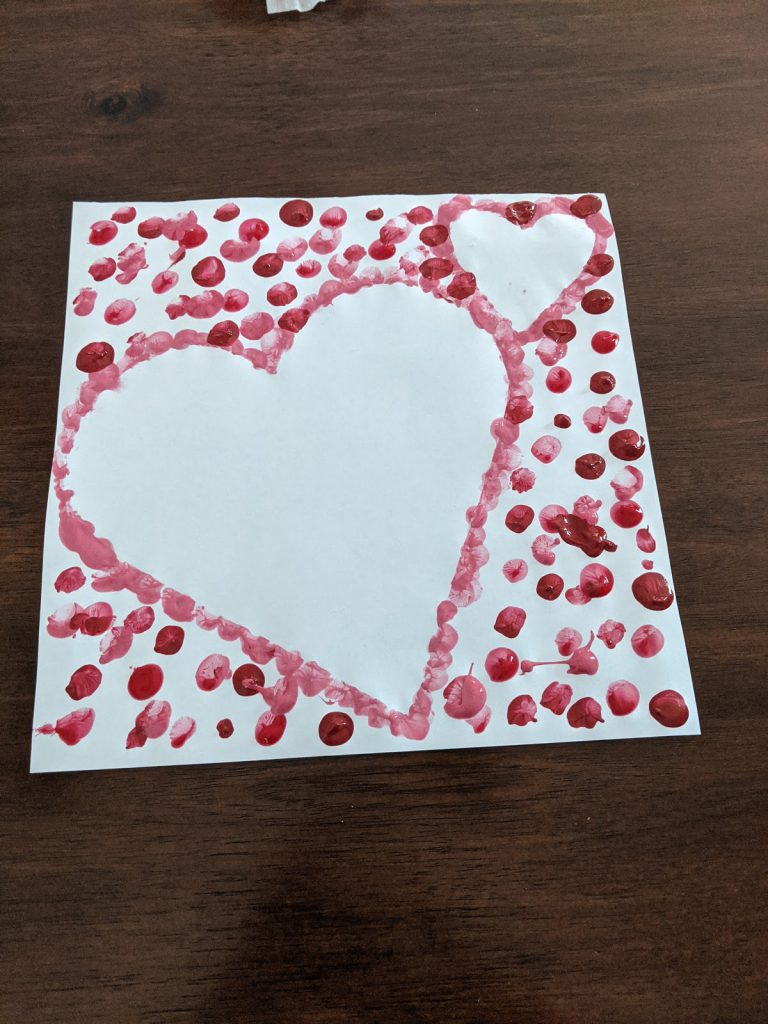 对于任何年龄而言,最后一步都很有趣!一旦他们在页面周围完成了指纹或点,就是时候剥去心脏了。